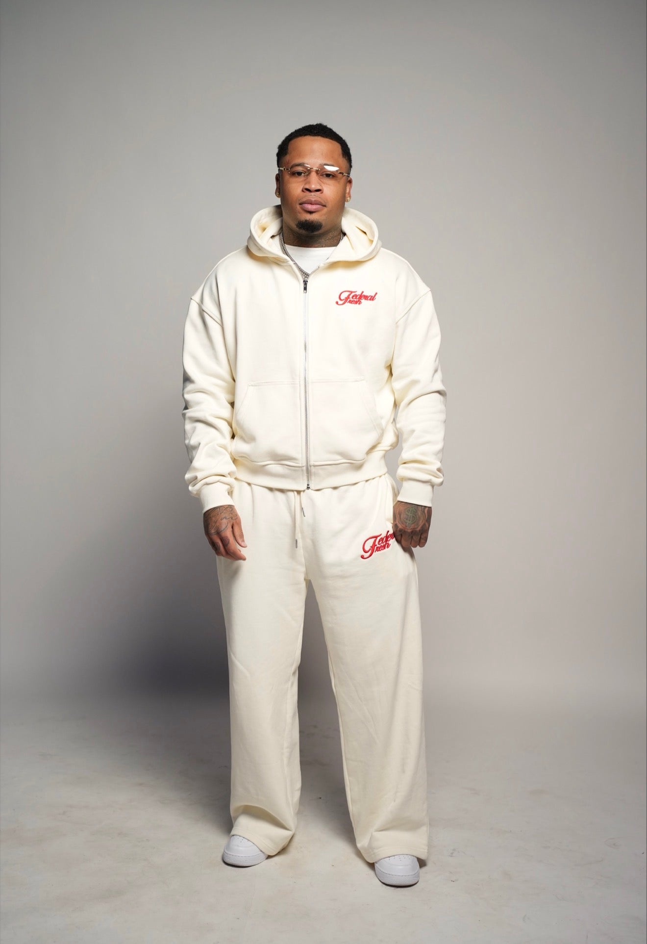 Creme and Red Federal Fresh Sweatpants